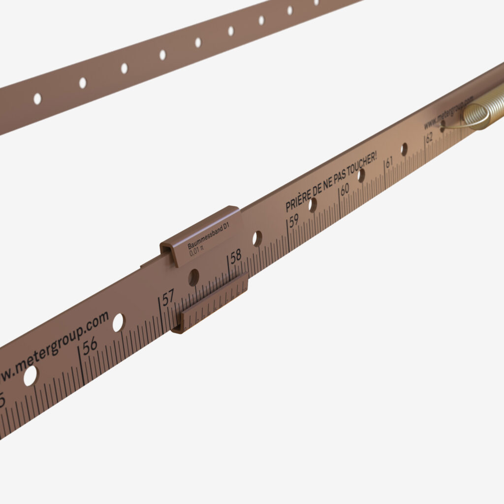 - Low-friction Astralon tape with minimal thermal expansion for consistent measurements, even in extreme weather. Friction is reduced by manufacturing the eyelets without burrs and eliminating printing on the bark-side surface of the tape. It wraps around the trunk of a tree and fastens with a spring mechanism that allows the tape to expand as the tree grows. Researchers can measure the change in diameter, typically at longer intervals (once a year).
