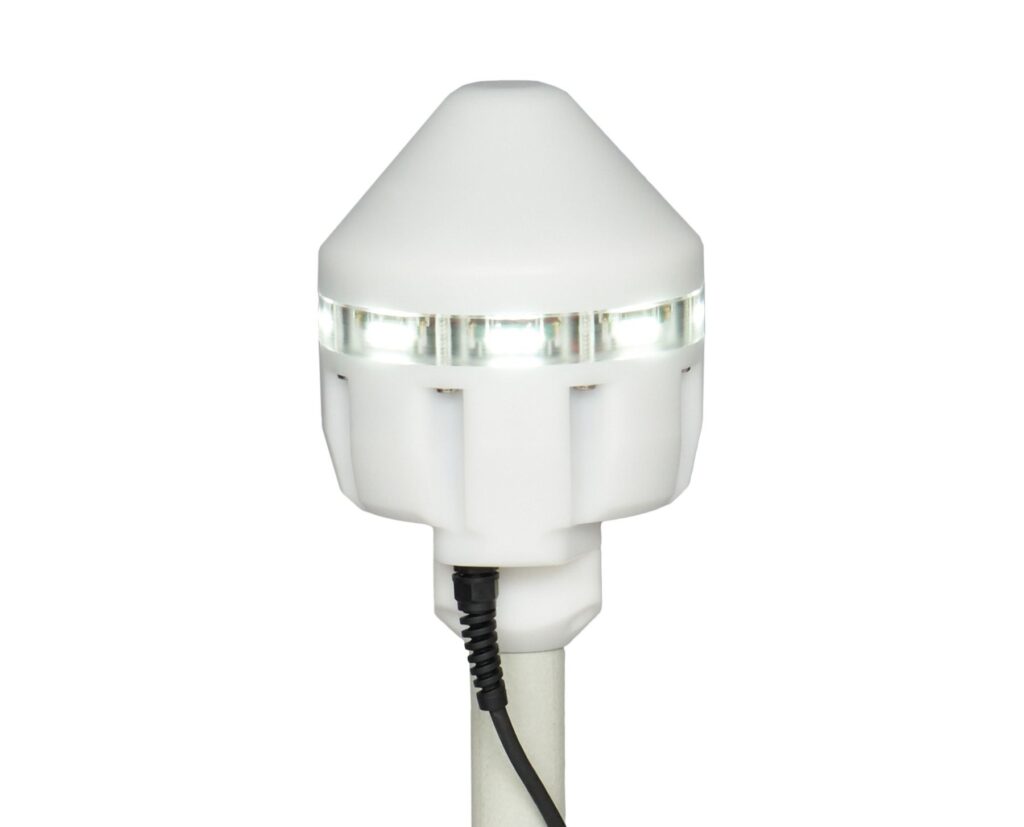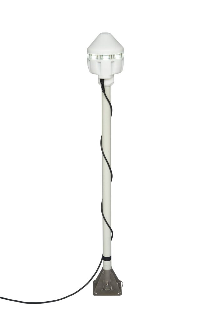 This is the most affordable option when the positioning of a large number of onboard devices is not required, for example when performing single channel UHR seismic or marine electrical resistivity and IP surveys. The onboard receiver is equipped with a radio modem and two RS232 connectors for transmitting data from both devices to a PC. The outboard receiver can be equipped with an optional GSM modem to receive NTRIP corrections from an onshore GNSS base to ensure centimeter accuracy of positioning in real time. Both receivers continuously record raw GNSS data for post-processing kinematic (PPK). Receiving data from additional outboard receivers requires a second (paired) onboard GNSS receiver or an optional radio modem unit. The NK receiver can be supplied with external signal lights mounted on a same pole and powered by a battery with two sealed connectors.