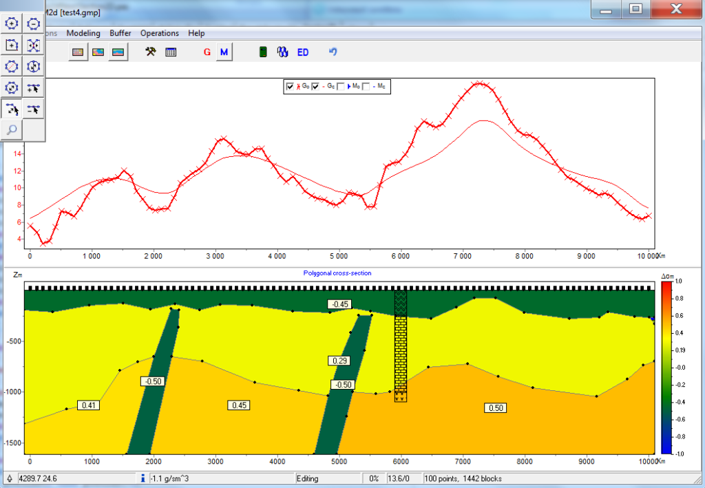 ZondGM2D new software for 2D gravity and magnetic survey combines the features of two predecessors ZondMag2D and ZondPGM. The program is designed for two-dimensional multiprofile interpretation of gravity and magnetic land / boreholes / aero data.