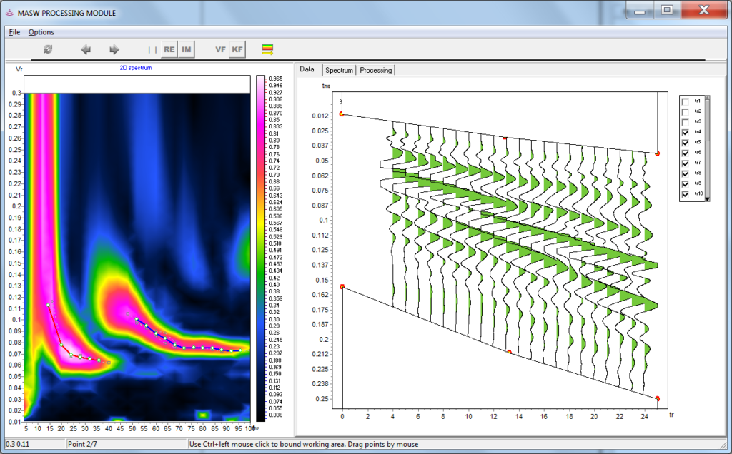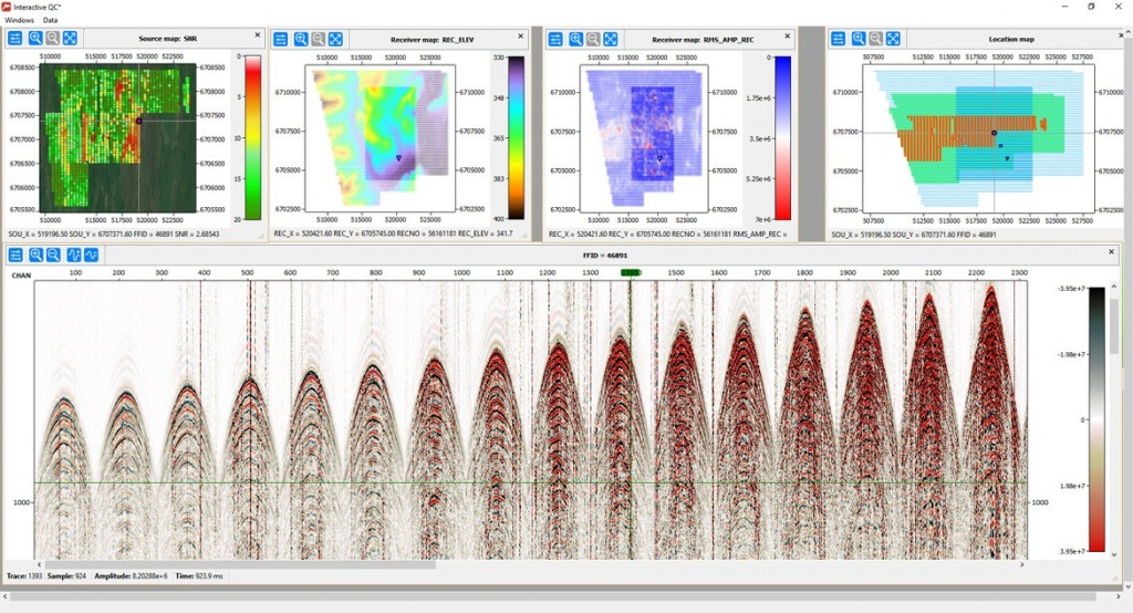 Infield data quality control is a standard procedure during oil and gas acquisitions, which typically includes position data quality checks, seismic data quality control and their relationship. RadExPro has various instruments, including data and spectrum analysis in user-defined windows, attribute analysis as well as modern interactive displays to provide the full control during the survey.