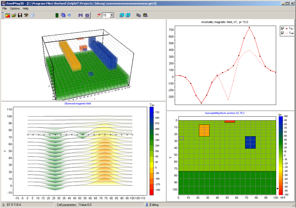ZondGM3d represents ready solution for gravity and magnetic methods, and solves wide range of problems from mathematical modeling to field data processing and interpretation. Convenient interface and variety of data visualization features allow to solve wide range of geological problems with maximum effectiveness.