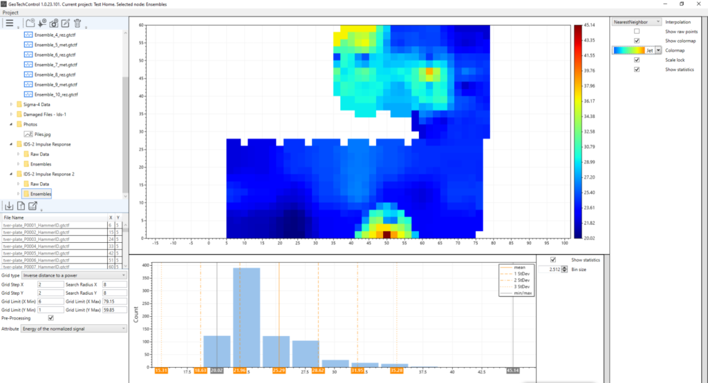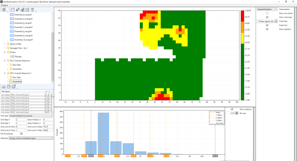 GeoTechControl implements a tool to process areal data and build attribute maps when working by the impact method on flat surfaces of foundations, tunnels and other building structures.