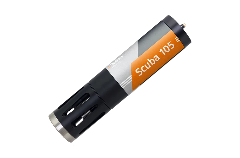 The Royal Eijkelkamp Scuba 50 measures 50 mm in diameter and is by default equipped with temperature, pH, electrical conductivity and dissolved oxygen sensors. Additional sensors are optional.